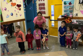 A turma do Maternal I/Tarde juntamente com a Professora Gisiele da Silva Rodrigues e com a Monitora Paola...