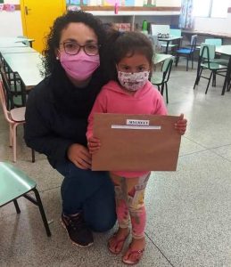 “As habilidades construídas na Educação Infantil terão reflexos ao longo de toda a vida escolar da criança, pois é nessa etapa do desenvolvimento que muitas habilidades essenciais são construídas”, destaca a Pedagoga Mara Lúcia Chiesa, que atua na SMEC e oferece suporte às escolas da rede municipal de ensino. Buscando manter o máximo possível de vínculos, professores mantém contato com as famílias por meio de grupos de whatsapp, contato que permite, também, oferecer orientação às crianças, conduzindo o fazer pedagógico e mantendo o vínculo com o grupo. Entre os dias 10 e 14 de agosto, a escola vem disponibilizando as atividades a serem desenvolvidas de forma domiciliar e, junto com as atividades, os alunos receberam presentes e homenagens pelo Dia do Estudante.
